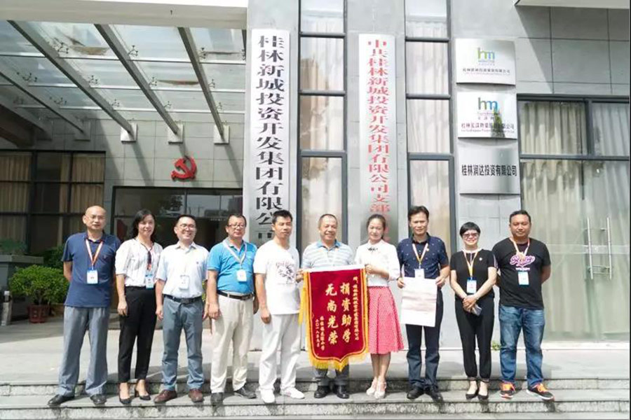 2018年9月18日上午,臨桂鎮(zhèn)花堽小學校長秦開勝、黨支部書記秦海燕將一面印有“捐資助學,無尚光榮”的錦旗送到新城投資集團。集團公司黨支部書記周道林、集團經營班子、支部委員一起接受錦旗。