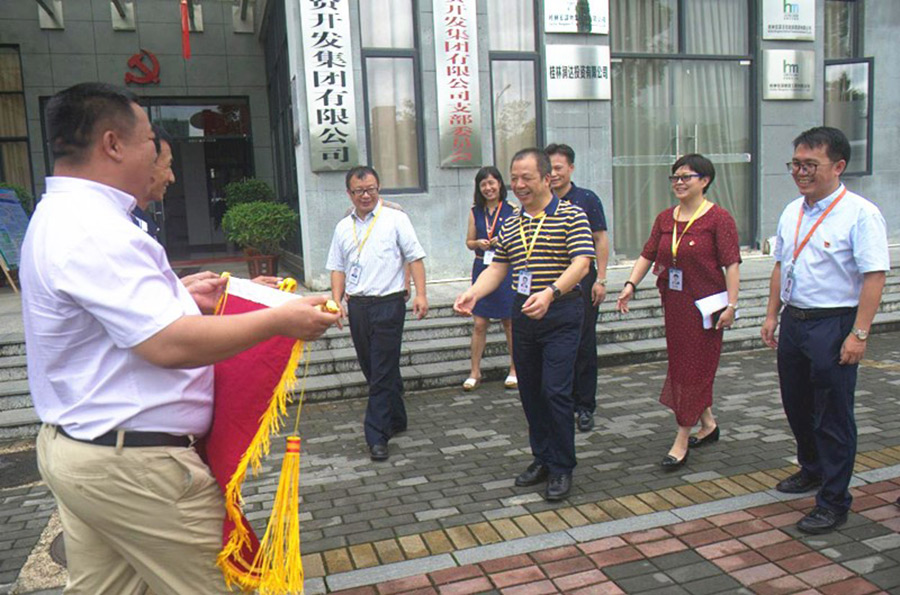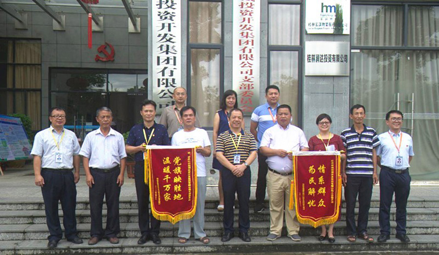 所謂綠水青山就是金山銀山,為村民們積極籌集資金清理和修復河堤,不僅保護了村里的青山綠水,同時也保護了村民的人身安全及財產(chǎn)安全。新城投資集團黨支部在臨桂新區(qū)工委和臨桂區(qū)直屬機關(guān)工委的具體指導下,積極踐行黨的十九大精神,用實際行動為群眾解決難題,辦實事,辦好事,得到了下頭陂村村民的一致認可和稱贊。村委經(jīng)過集體商量,一致決定給新城投資集團黨支部送上“黨旗映勝地,溫暖千萬家”的錦旗;給工會送上“情系群眾,為民解憂”的錦旗,表達了村民們對新城投資集團給予的支持和幫助致以誠摯的謝意。
