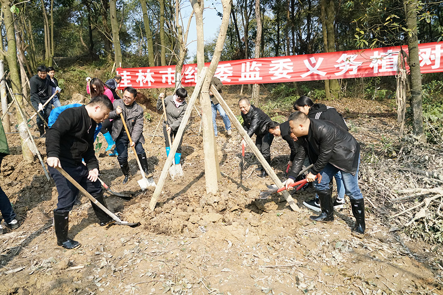 陽(yáng)春三月,萬(wàn)物復(fù)蘇,為積極響應(yīng)國(guó)家大力開展植樹造林的號(hào)召,推進(jìn)生態(tài)文明建設(shè),倡導(dǎo)健康文明、綠色環(huán)保的生活理念,3月12日上午,新城投資集團(tuán)帶領(lǐng)市建筑設(shè)計(jì)院、嘉華監(jiān)理公司、中建八局桂林公司參加了由市紀(jì)委組織的基地項(xiàng)目義務(wù)植樹活動(dòng)。據(jù)組織方介紹,市紀(jì)委、市巡查辦、市派駐紀(jì)檢組、臨桂區(qū)紀(jì)委、林業(yè)局、園林局等多家單位,計(jì)180余人參加了此次植樹活動(dòng)。