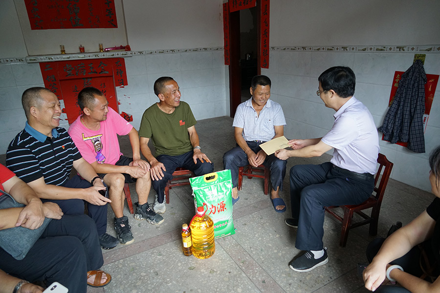 為紀(jì)念建黨98周年,在實(shí)踐中深入學(xué)習(xí)貫徹習(xí)近平新時(shí)代中國特色社會(huì)主義思想和黨的十九大精神,營造“不忘初心、牢記使命”主題教育氛圍,7月19日臨桂新區(qū)工委及臨桂新區(qū)黨總支下轄的機(jī)關(guān)黨支部、新城投資集團(tuán)黨支部赴資源縣兩水苗族鄉(xiāng)煙竹村(管委、新城投資集團(tuán)幫扶極度貧困村)開展“不忘初心,牢記使命”主題黨日活動(dòng)。臨桂新區(qū)工委副書記、管委會(huì)副主任唐標(biāo)明走訪慰問貧困黨員,市紀(jì)委派駐臨桂新區(qū)紀(jì)檢組副組長(zhǎng)唐良平,新城投資集團(tuán)黨支部書記、董事長(zhǎng)、總經(jīng)理周道林陪同慰問。