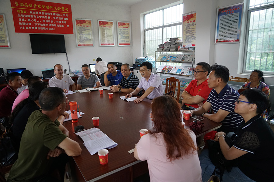 慰問組在村委辦公室與資源縣組織部分管領(lǐng)導(dǎo)、兩水鄉(xiāng)鎮(zhèn)分管領(lǐng)導(dǎo)、煙竹村支書、村主任、市農(nóng)業(yè)局分管扶貧領(lǐng)導(dǎo)、派駐第一書記、派駐隊(duì)員見面并進(jìn)行座談,調(diào)研了解村組脫貧攻堅(jiān)任務(wù)和情況。唐標(biāo)明詳細(xì)詢問了駐村工作隊(duì)員近期的工作、生活情況,并與大家共同探討、謀劃2019年產(chǎn)業(yè)脫貧工作的各項(xiàng)目標(biāo)和任務(wù)。唐標(biāo)明對(duì)兩名駐村隊(duì)員的工作給了充分的肯定,同時(shí)對(duì)下一步工作提出了三方面的要求:一是要團(tuán)結(jié),積極融入村兩委班子,服從村級(jí)管理,在工作上要維護(hù)村黨支部書記的統(tǒng)一領(lǐng)導(dǎo);二是多為村脫貧攻堅(jiān)想辦法、出思路,打好年度脫貧攻堅(jiān)戰(zhàn);三是統(tǒng)籌利用自身優(yōu)勢(shì),多為村級(jí)爭(zhēng)取扶貧項(xiàng)目。