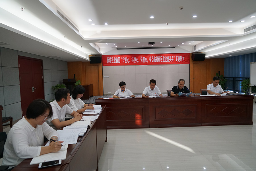 當(dāng)天下午,新城投資集團黨員領(lǐng)導(dǎo)班子開展了“守初心、持恒心、強信心,爭當(dāng)臨桂新區(qū)建設(shè)排頭兵”專題研討。