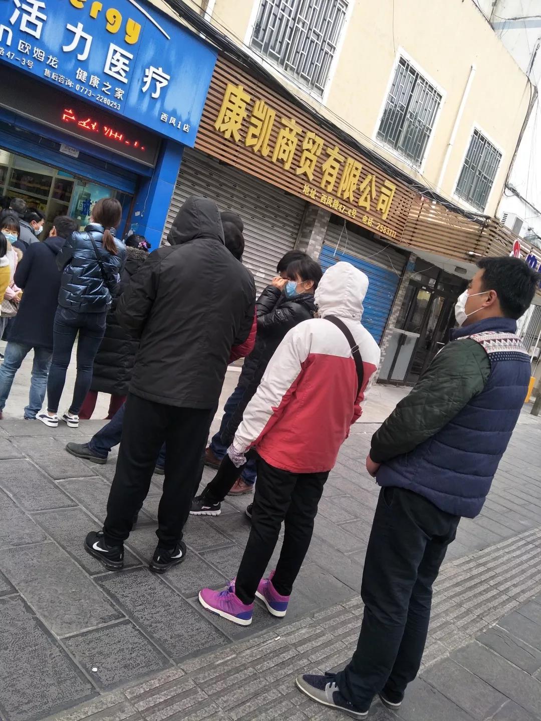 ▲冷冷的天氣,唐忠祥同志在各藥店和醫(yī)療器械機構門口排隊采購物資。