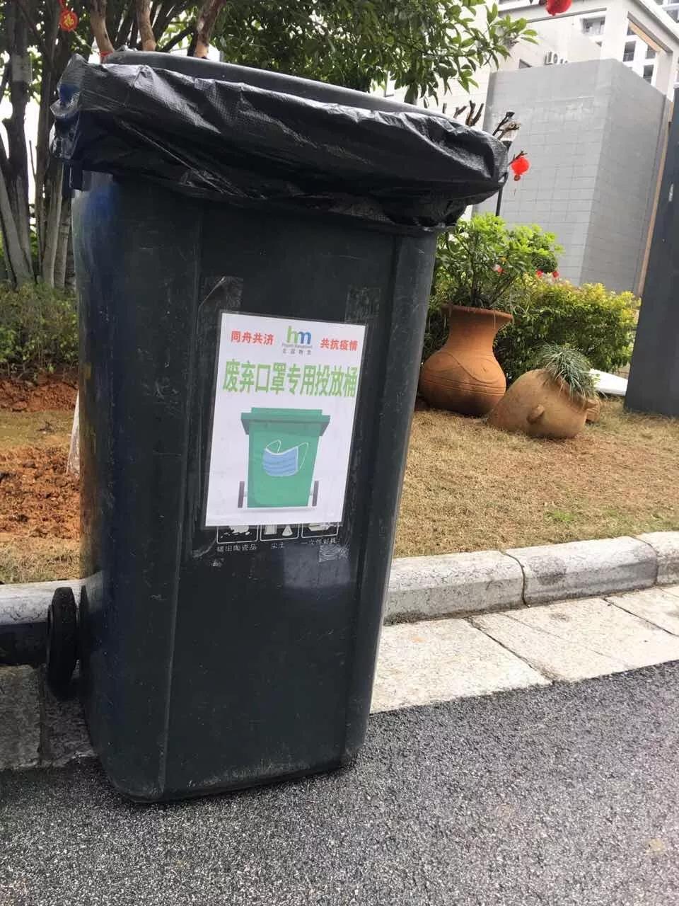 ▲小區(qū)內(nèi)廢棄口罩專用投放箱。