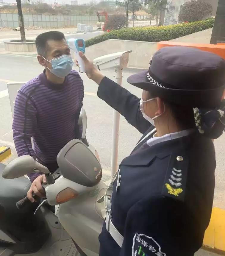 ▲疫情防控崗在為進入小區(qū)人員測體溫。