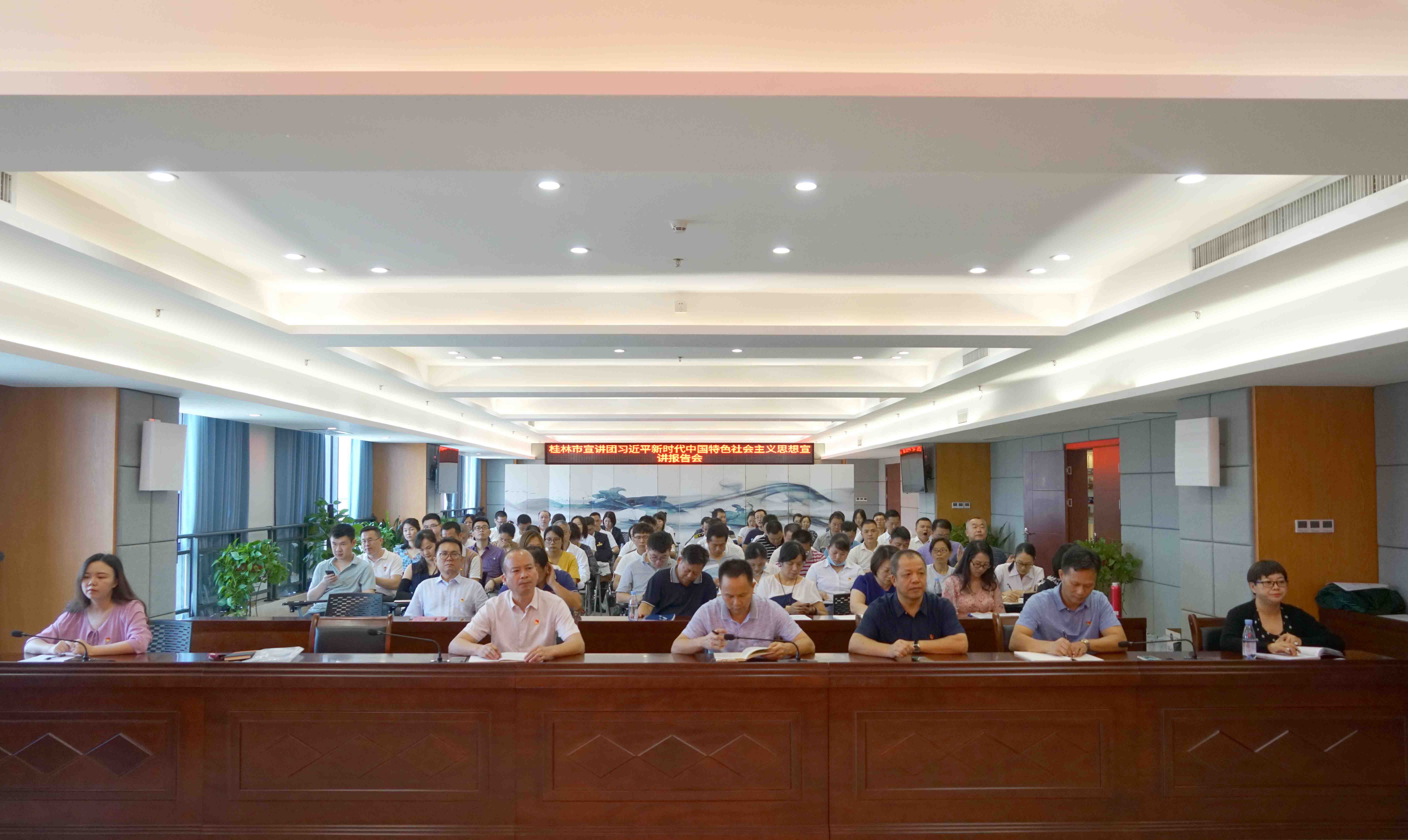 7月14日,臨桂新區(qū)工委組織習(xí)近平新時代中國特色社會主義思想進新區(qū)宣講報告會,宣講報告會在集團辦公大樓十樓黨員會議室舉行。臨桂新區(qū)工委委員、市紀委監(jiān)委駐臨桂新區(qū)管委會紀檢監(jiān)察組組長羅正寶同志,臨桂新區(qū)管委黨總支副書記李鋒同志,新城投資集團黨總支書記周道林同志等出席了宣講報告會。宣講報告會由臨桂新區(qū)工委組織人事部部長梁利同志主持,集團黨總支黨員(含預(yù)備黨員)、入黨積極分子、發(fā)展對象80余人參加學(xué)習(xí)。