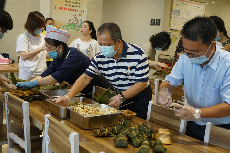 物業(yè)分會(huì)場(chǎng),邀請(qǐng)了環(huán)湖社區(qū)黨支部共同參與活動(dòng),物業(yè)分會(huì)員工和環(huán)湖社區(qū)黨員歡聚一堂,開展了小組包粽子比賽和端午節(jié)趣味知識(shí)問答,在體驗(yàn)包粽子的同時(shí),還學(xué)到了有趣的傳統(tǒng)文化小知識(shí)。