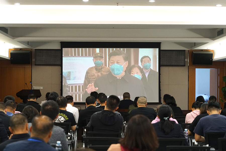 課后,全體黨員領(lǐng)導(dǎo)干部集體觀看了公益專題片《戰(zhàn)“疫”一線黨旗紅》。影片再現(xiàn)了新冠肺炎疫情暴發(fā)以來,在以習(xí)近平同志為核心的黨中央堅(jiān)強(qiáng)領(lǐng)導(dǎo)下,各級(jí)黨組織和廣大黨員、干部聞令而動(dòng)、身先士卒、沖鋒在前、英勇奮斗,在抗疫一線充分發(fā)揮戰(zhàn)斗堡壘作用、先鋒模范作用的先進(jìn)典型和感人事跡場(chǎng)面。