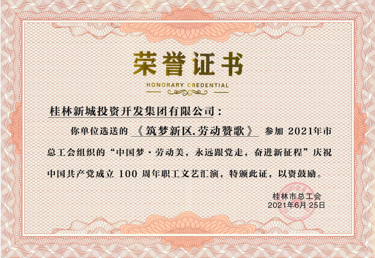 2021年6月25日,由桂林市總工會主辦的 “中國夢勞動美——永遠跟黨走,奮進新征程”慶祝中國共產(chǎn)黨成立100周年全市職工文藝匯演在桂林春天劇院隆重舉行。市委副書記趙仲華,市人大副主任、市總工會主席徐鋒,副市長龍杏華,市政協(xié)副主席蔣昌桂,市總工會黨組書記、常務副主席、機關黨委書記寧志出席活動。新城投資集團黨總支書記、董事長、總經(jīng)理周道林作為受邀嘉賓參加活動。