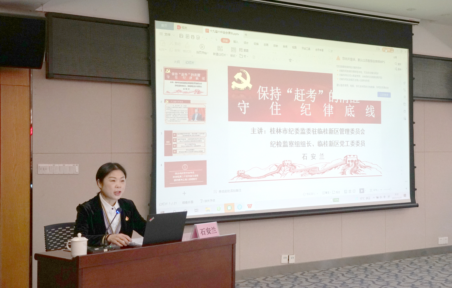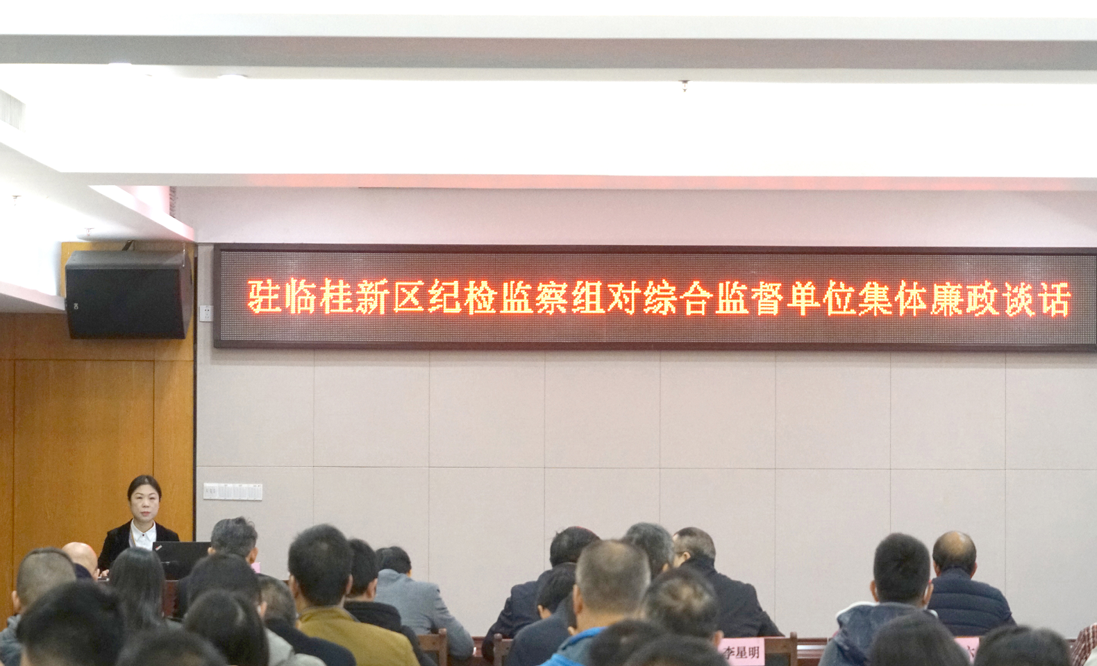 市紀(jì)委監(jiān)委駐臨桂新區(qū)管委會(huì)紀(jì)檢監(jiān)察組組長、臨桂新區(qū)黨工委委員石安蘭開展集體廉政談話暨《保持“趕考”的清醒 守住紀(jì)律底線》黨課