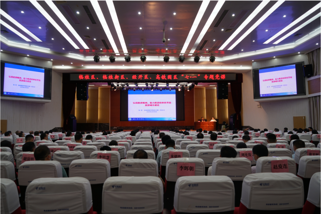 為慶?!捌咭弧苯h節(jié),喜迎黨的二十大勝利召開,扎實(shí)推進(jìn)黨史教育常態(tài)化長效化開展,增強(qiáng)黨員領(lǐng)導(dǎo)干部使命感和責(zé)任感,加快推進(jìn)桂林產(chǎn)業(yè)振興,為打造世界級(jí)旅游城市提供堅(jiān)強(qiáng)的思想和組織保障,2022年6月28日上午,桂林市紀(jì)委駐臨桂新區(qū)管委會(huì)紀(jì)檢監(jiān)察組在臨桂區(qū)委黨校一樓報(bào)告廳組織召開“弘揚(yáng)嘉庚精神,著力推進(jìn)桂林世界旅游城市建設(shè)”專題黨課。黨課由桂林市紀(jì)委駐臨桂新區(qū)管委會(huì)紀(jì)檢監(jiān)察組組長、臨桂新區(qū)黨工委委員石安蘭主持。