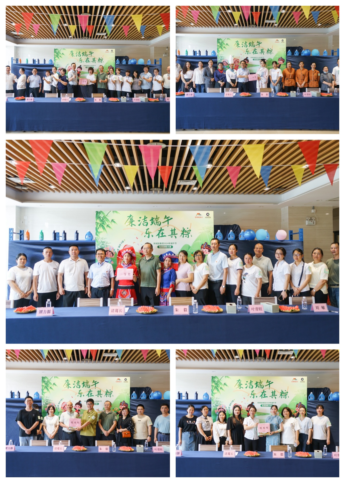 在活動(dòng)正式開(kāi)始前,組織者特意安排了一個(gè)有趣的環(huán)節(jié)——找食材,即參加包粽子活動(dòng)的員工們?cè)谝?guī)定范圍內(nèi)將寫有粽葉、糯米、繩子的紙條找出來(lái),最先找齊所有材料的小組在比賽中可以加分。活動(dòng)主持人話音剛落,各參賽小組迅速行動(dòng),一眨眼的功夫就將食材找齊。隨后包粽子大賽鳴鑼開(kāi)賽,會(huì)包粽子的員工率先示范,“菜鳥們”也立即向“老師”請(qǐng)教,七手八腳的行動(dòng)起來(lái)。很多員工是第一次包粽子,感覺(jué)到新鮮的同時(shí),也感受到了手忙腳亂,不是這“漏米了”,就是那“松散了”,現(xiàn)場(chǎng)歡聲笑語(yǔ),糯米飛舞,各種形狀的粽子層出不窮,慢慢堆積成了小山。緊接著,評(píng)委團(tuán)對(duì)參賽小組包好的粽子從形狀規(guī)整、大小適中、捆扎牢固、外觀美觀、個(gè)人衛(wèi)生、民族特色等方面進(jìn)行打分。最終經(jīng)過(guò)評(píng)比,物業(yè)分會(huì)小組獲得一等獎(jiǎng)、機(jī)關(guān)分會(huì)小組獲得二等獎(jiǎng)、子公司分會(huì)小組獲得三等獎(jiǎng),城建集團(tuán)小組和建設(shè)分會(huì)小組分獲優(yōu)秀獎(jiǎng)。