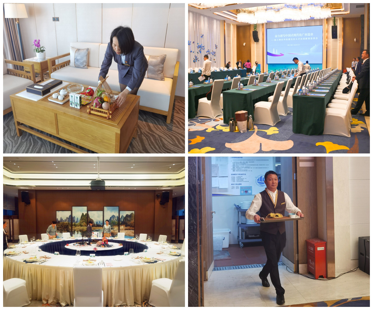 作為本次活動的定點接待酒店,宏謀大酒店精心規(guī)劃、優(yōu)化配置,力求在每一個細節(jié)上做到盡善盡美。酒店房務(wù)部在入住房間內(nèi)準備了應(yīng)季水果、美味小食、營養(yǎng)牛奶及溫馨歡迎卡片,對每一間客房的床品、設(shè)施設(shè)備進行細致檢查,確保嘉賓入住安全、舒適。大會期間,酒店全體員工齊心協(xié)力,順利完成宴會和會議場地的布置工作。餐飲部門更是精心設(shè)計宴會擺臺,從菜單構(gòu)思、食材采購到菜品烹制,每一個環(huán)節(jié)都嚴格把關(guān),全力保障與會嘉賓的用餐安全與品質(zhì)。在接待工作中表現(xiàn)優(yōu)異的酒店員工李軍表示:“我從新城投集團本部行政辦公室調(diào)至宏謀大酒店后,迅速調(diào)整心態(tài),適應(yīng)角色轉(zhuǎn)變,積極融入到全新的工作環(huán)境中。我在完成酒店辦公室日常工作的同時,還經(jīng)常主動延長工作時間,積極參與酒店的重要會議和接待工作中。我作為一位共產(chǎn)黨員和退役軍人,更要在工作中沖鋒在前,充分發(fā)揮共產(chǎn)黨員的先鋒模范作用和軍人恪盡職守的優(yōu)秀品質(zhì),在不一樣的崗位上書寫一樣的人生華章?!?/strong>