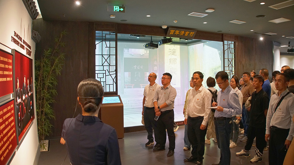 黨課結(jié)束后,駐桂林市工作隊與新城投集團全員在講解員的帶領下,依次參觀了廣西家教家風基地先賢家風、紅色家風、時代先鋒展廳。通過觀看一系列珍貴的歷史照片、泛黃的家書以及深刻的家訓,仿佛與古代先賢、革命前輩時空對話,領悟他們堅定信念和崇高品德,深刻感受家風家教在傳承紅色基因、弘揚革命精神中的重要作用。大家紛紛表示,基地中蘊含的家教智慧、廉政思想和優(yōu)良家風,值得如今每一個“小家”借鑒弘揚。陳湛林以《靈川古韻頌家風》為題賦詩一首,表達自己的所思所想、所感所悟?!办`川大地映晴空,江頭村內(nèi)訪古蹤。家風淳厚傳千古,示范基地蘊德濃。碧瓦紅墻話廉政,碑文石刻醒心胸。子孫后代當自勵,清廉家訓永相從?!?/span>