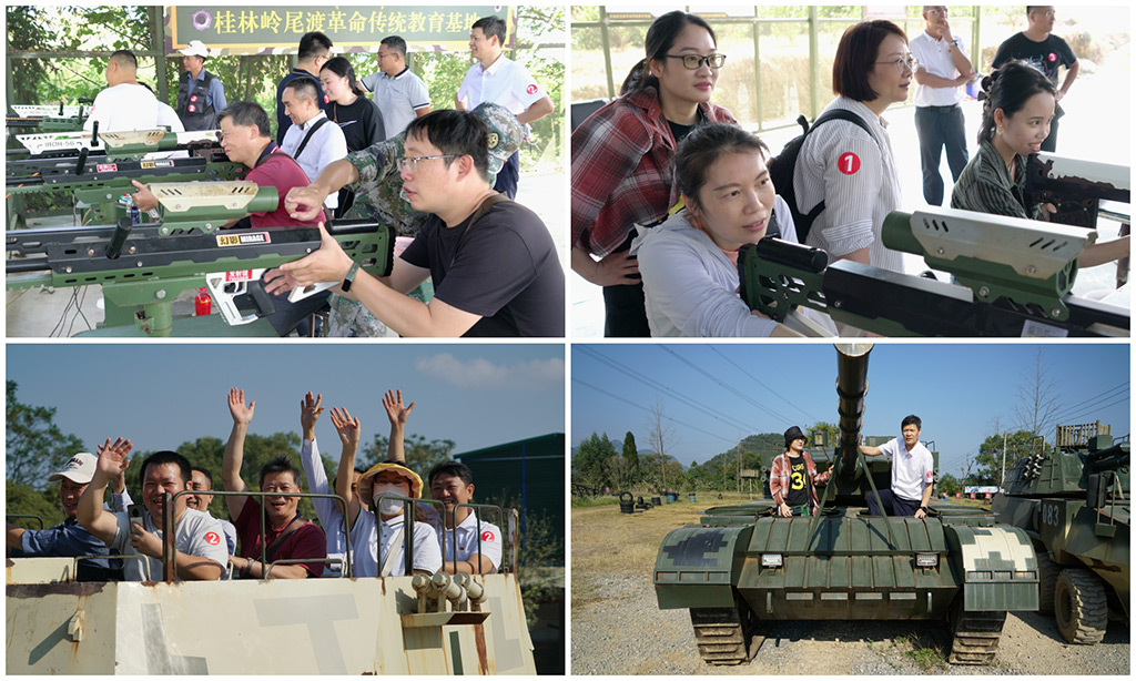 下午,全體成員前往桂林嶺尾渡革命傳統(tǒng)教育基地進行實地學習。大家通過參觀桂北游擊隊文史館,聆聽革命故事,共同回顧了那段波瀾壯闊的革命歲月,深刻領悟到革命先輩們?yōu)槊褡濯毩⒑腿嗣窠夥攀聵I(yè)所付出的巨大犧牲。參觀結(jié)束后,大家在基地體驗了射擊、坦克駕乘項目,通過寓教于樂的方式,體驗桂北游擊抗日精神和吃苦耐勞的革命精神,增強愛國主義情懷和意識。