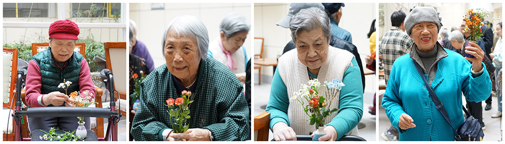 黨課結(jié)束后,老人們在黨員志愿者的陪伴下開展插花活動。志愿者們將一個(gè)個(gè)小巧精致的花瓶親手送到每一位老人的手中。在一片歡聲笑語中,大家一邊享受插花樂趣,一邊分享彼此心得體會,攜手創(chuàng)作出一件件精美的插花作品??粗约河H手制作的作品,老人們臉上流露出深深的成就感和自豪感。