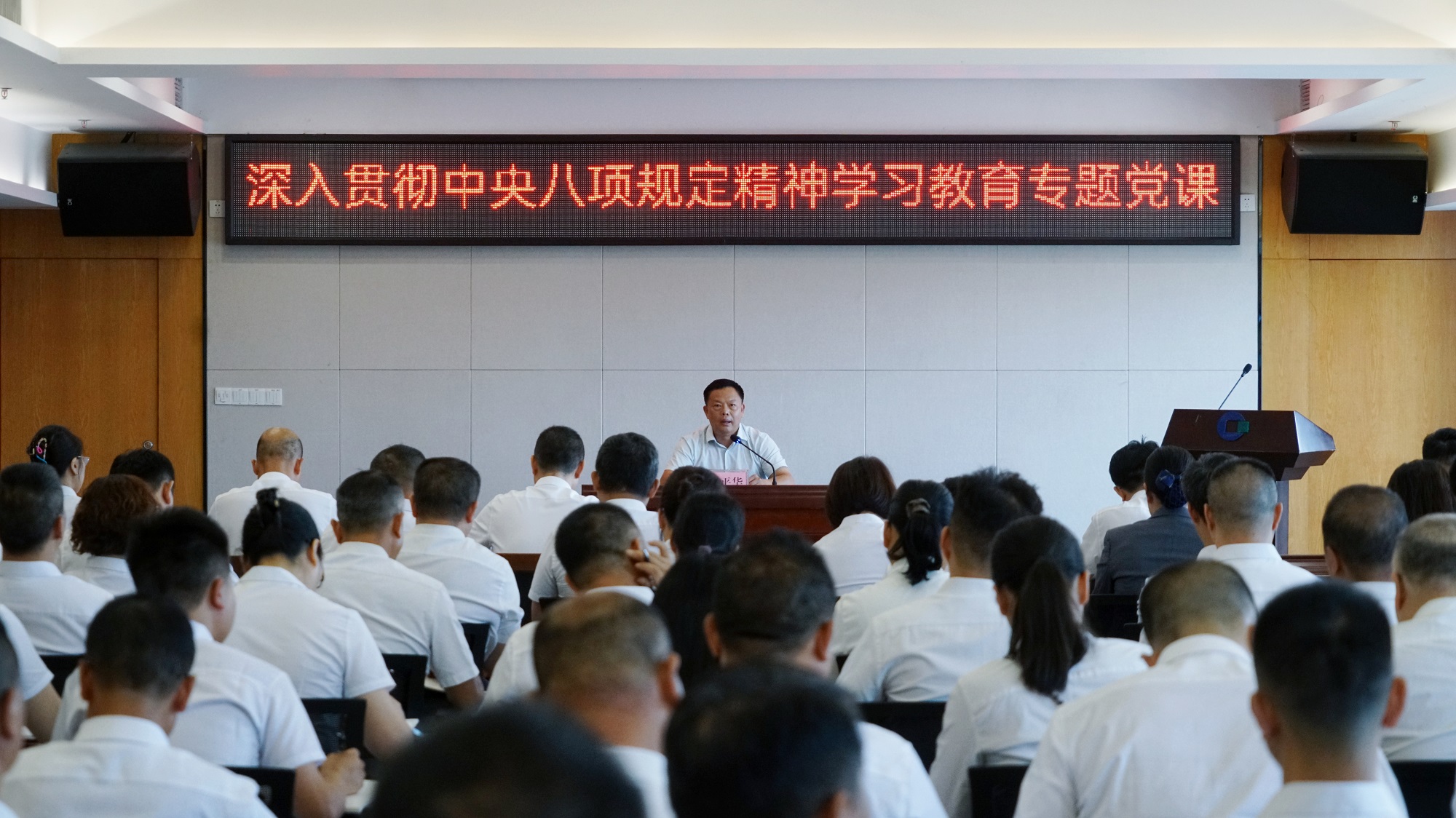 為扎實(shí)開展深入貫徹中央八項(xiàng)規(guī)定精神學(xué)習(xí)教育,進(jìn)一步提升黨員干部紀(jì)律意識(shí),強(qiáng)化作風(fēng)建設(shè),2025 年 6 月 25 日下午,市國資委黨委書記、主任蔣平華為集團(tuán)全體黨員及中層以上管理干部授課。