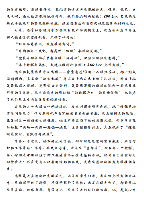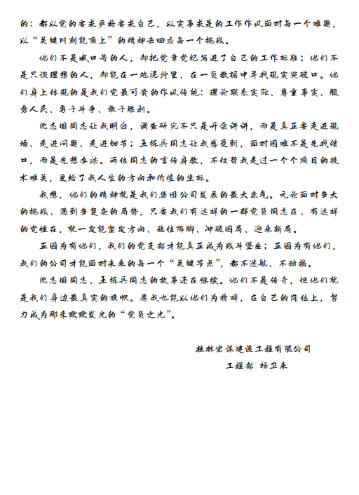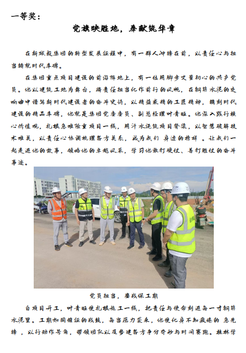 自2025年6月3日啟動征稿以來,征文比賽得到支部黨員、入黨積極分子及集團職工的廣泛響應(yīng),共收到征文作品11篇。參賽作品以真實故事為根基,聚焦身邊黨員在崗位奉獻、志愿服務(wù)、攻堅克難等方面的典型事例:工地一線的堅守身影、志愿服務(wù)中的暖心瞬間、基層攻堅中的感人故事……這些平凡崗位上的不平凡事跡,生動詮釋了“身邊榜樣”的時代精神,充分展現(xiàn)了新時代黨員的責任擔當與奉獻情懷。