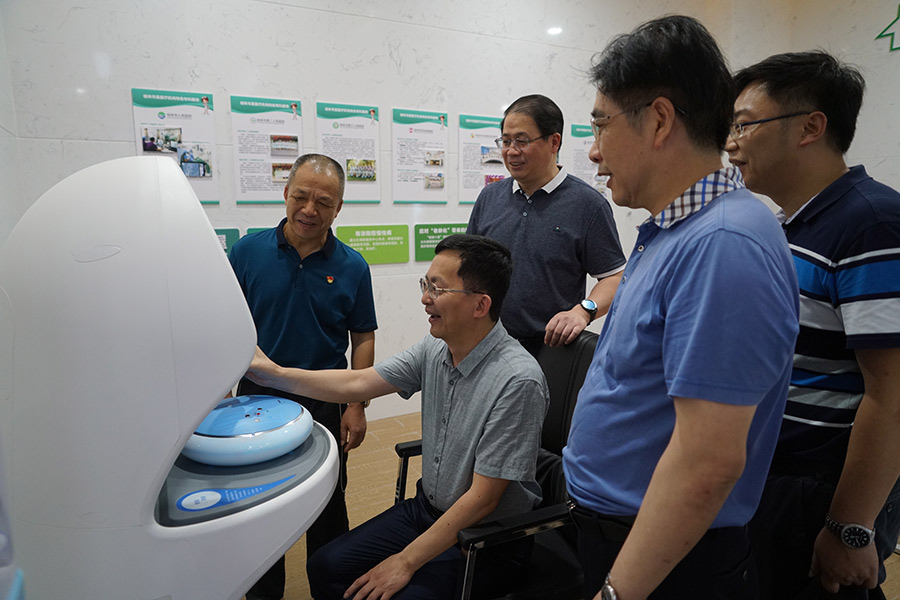 彭東光陪同呂洪安按照黨群服務中心的參觀路線,依次參觀了職工書吧、健康小屋、時光隧道、湘江戰(zhàn)役幻影成像、五大黨建版塊、十二縣區(qū)展區(qū)、臨桂新區(qū)展區(qū)、新城投資集團展區(qū)、人才家園區(qū)及會議室。呂洪安體驗了“零距離”便民服務的智能健康體檢設備,連連稱贊,要求紀檢監(jiān)察綜合業(yè)務基地也要考慮同樣的服務設施。建議在場地允許和時機成熟時,在中心二樓打造清廉榜樣展廳,突出黨員榜樣的力量。