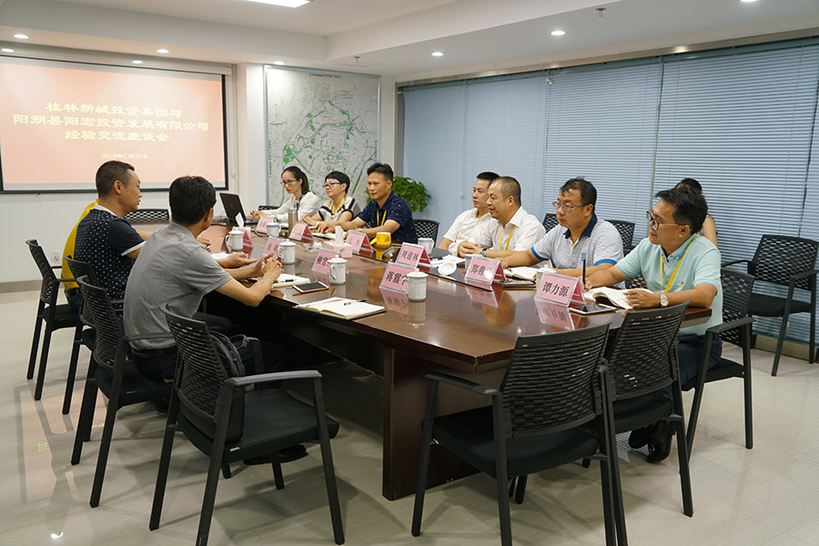 7月29日,陽朔縣陽宏投資發(fā)展有限公司總經(jīng)理朱毅率領(lǐng)導(dǎo)班子一行四人到新城投資集團(tuán),就融資、項(xiàng)目建設(shè)等進(jìn)行交流學(xué)習(xí),并到公司建設(shè)項(xiàng)目現(xiàn)場進(jìn)行了參觀。桂林市臨桂新區(qū)管理委員會副主任文杰,新城投資集團(tuán)董事長、總經(jīng)理周道林,副總經(jīng)理鄧仁友、鄭善華、張新悅,新城投資集團(tuán)工會主席譚力源等參加座談。