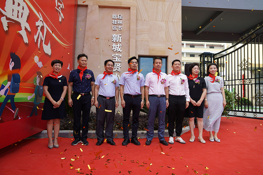 典禮上,少先隊(duì)員給出席活動(dòng)的領(lǐng)導(dǎo)嘉賓敬獻(xiàn)了紅領(lǐng)巾,新城寶賢小學(xué)校長(zhǎng)陳慧鳳致歡迎詞,并介紹了新城寶賢小學(xué)的基本情況。文杰表示新城寶賢小學(xué)的落成將緩解學(xué)校周邊居民子女就近入學(xué)困難的問(wèn)題,進(jìn)一步緩解臨桂新區(qū)適齡兒童就學(xué)壓力,促進(jìn)臨桂新區(qū)的小學(xué)教育的穩(wěn)定、持續(xù)、協(xié)調(diào)、健康發(fā)展。周波宣布新城寶賢小學(xué)成立,領(lǐng)導(dǎo)嘉賓共同為新城寶賢小學(xué)揭牌。