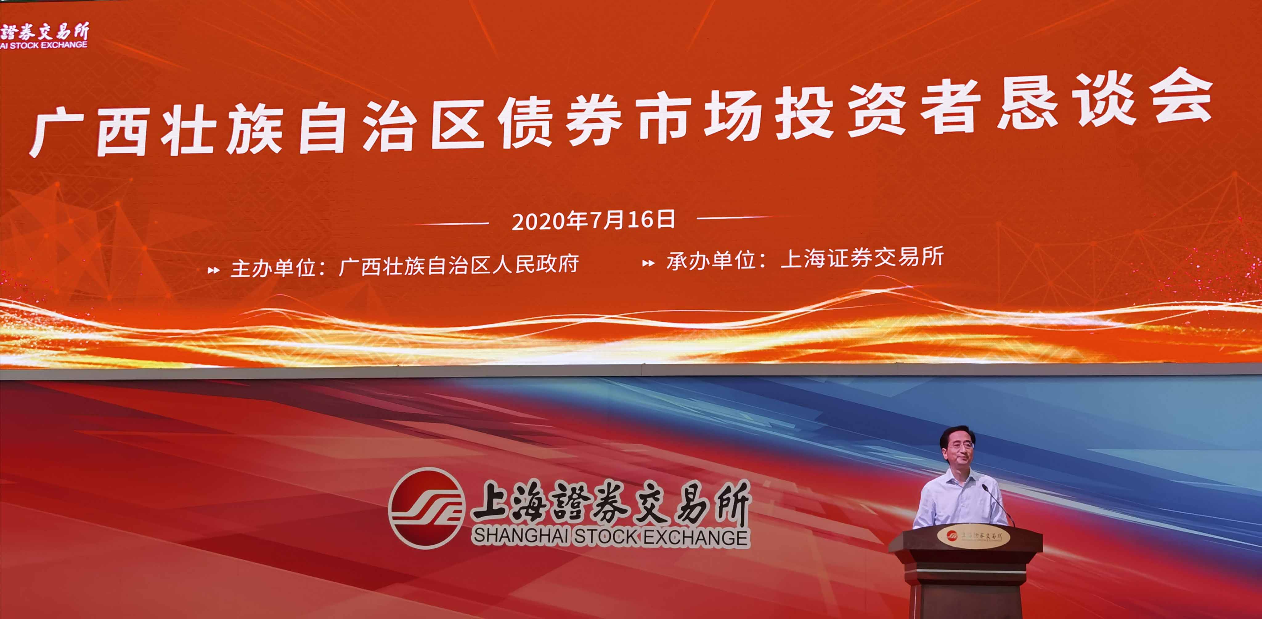 為貫徹落實《中共中央 國務(wù)院關(guān)于新時代推進(jìn)西部大開發(fā)形成新格局的指導(dǎo)意見》,提升西部地區(qū)直接融資比例,切實提升廣西債券融資能力,助推廣西經(jīng)濟(jì)高質(zhì)量發(fā)展,廣西壯族自治區(qū)人民政府于2020年7月16日在上海證券交易所舉辦了廣西壯族自治區(qū)債券市場投資者懇談會。國泰君安證券、申港證券、交通銀行等國內(nèi)30余家金融機(jī)構(gòu)代表及廣西投資集團(tuán)、北部灣投資集團(tuán)、廣西物質(zhì)集團(tuán)、柳州東城集團(tuán)等20余家廣西區(qū)內(nèi)大型知名企業(yè)參加了本次懇談會。上海證券交易所黨委書記、理事長黃紅元(副部長級)出席會議,上海證券交易所副副總經(jīng)理劉紹統(tǒng)、廣西區(qū)人大常委會副主任張曉欽先后致辭發(fā)言,廣西金融監(jiān)管局、廣西財政廳負(fù)責(zé)人介紹了廣西債券發(fā)行工作情況。