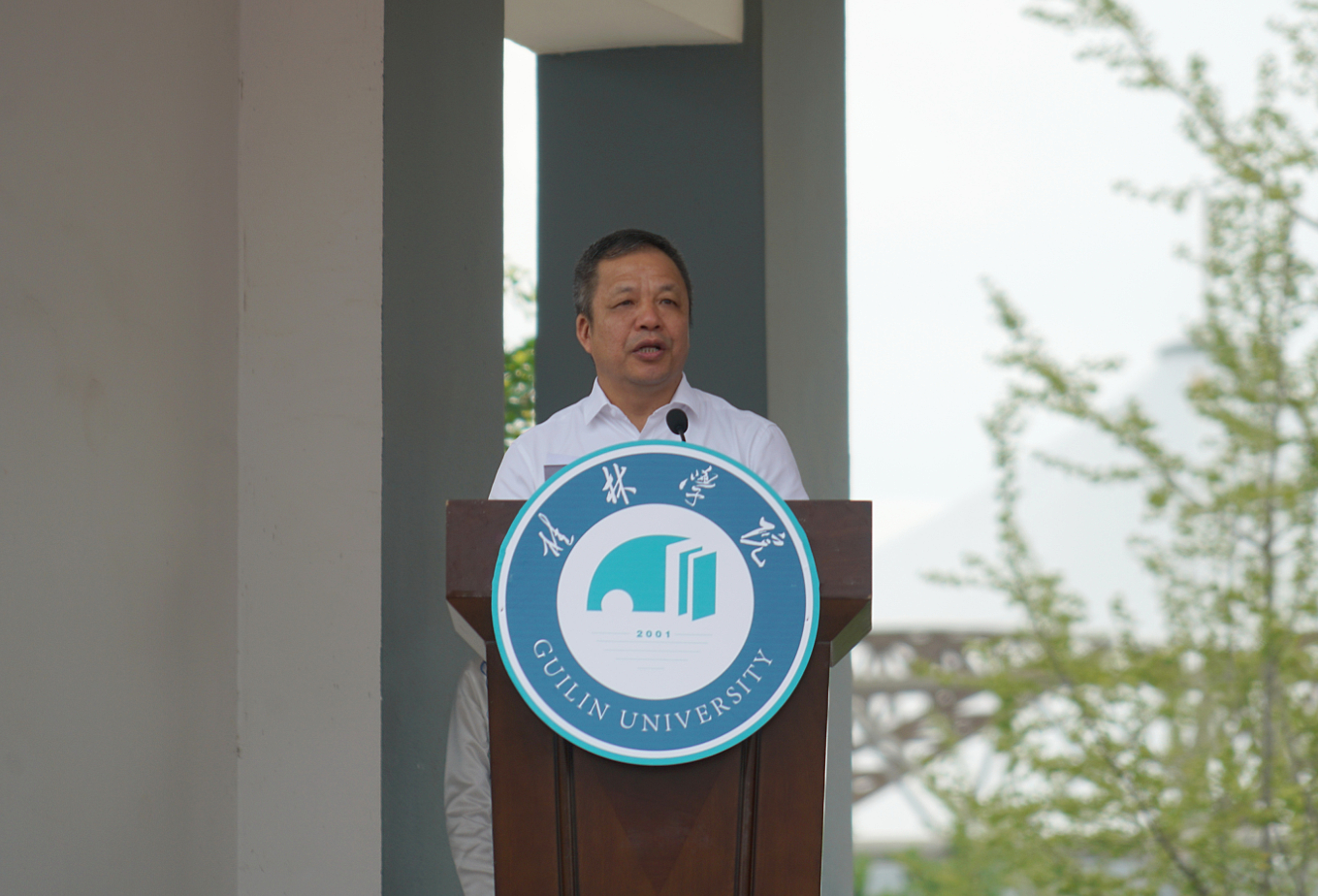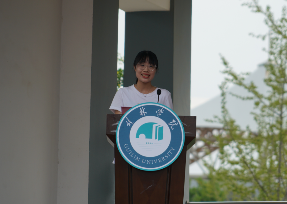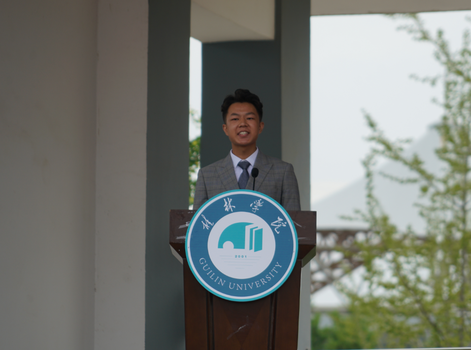 “云中的神啊,霧中的仙,神姿仙態(tài)桂林的山!情一樣深啊,夢一樣美,如情似夢漓江的水!水幾重啊,山幾重?水繞山環(huán)桂林城……”,周道林以中國當(dāng)代詩人賀敬之的《桂林山水歌》為開場白,向從五湖四海來到桂林學(xué)院的莘莘學(xué)子們表達最誠摯的問候與歡迎。