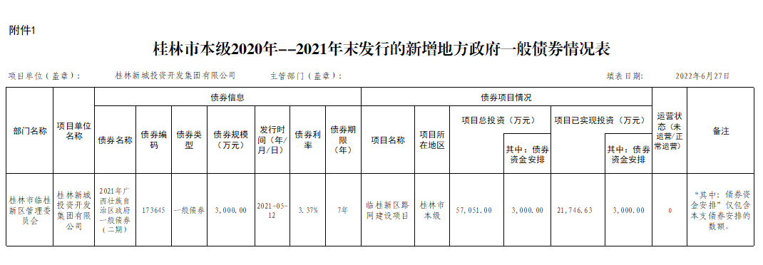 桂林新城投資開發(fā)集團有限公司關(guān)于2020年-2021年發(fā)行的新增政府債券使用和管理情況(一般債券)