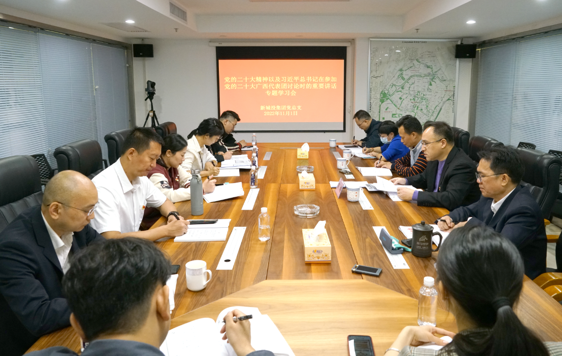 近日,新城投集團(tuán)采取靈活多樣的方式,在集團(tuán)公司全體黨員干部職工中迅速掀起宣傳貫徹黨的二十大精神和習(xí)近平總書記在參加黨的二十大廣西代表團(tuán)討論時(shí)的重要講話的學(xué)習(xí)熱潮。
