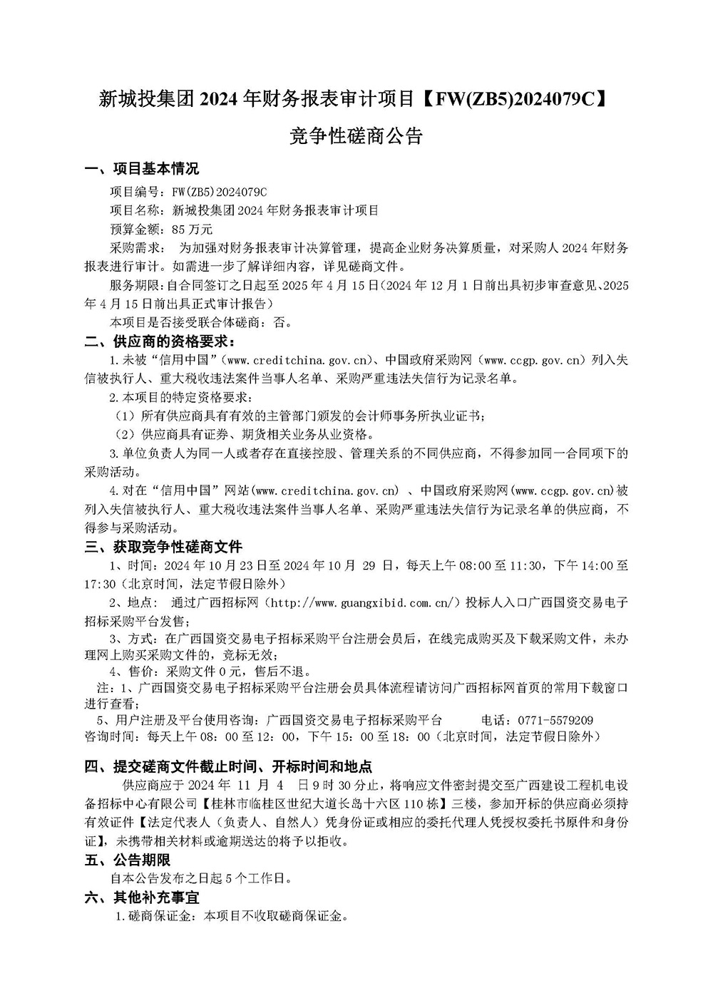 新城投集團(tuán) 2024 年財務(wù)報表審計項(xiàng)目【FW(ZB5)2024079C】 競爭性磋商公告
