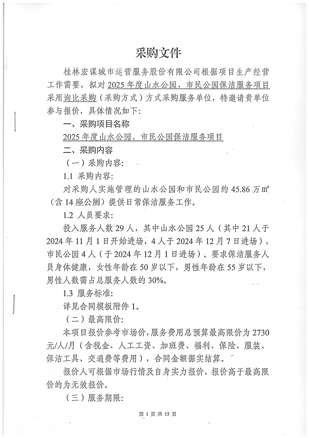 2025年度山水公園、市民公園保潔服務(wù)項(xiàng)目采購文件
