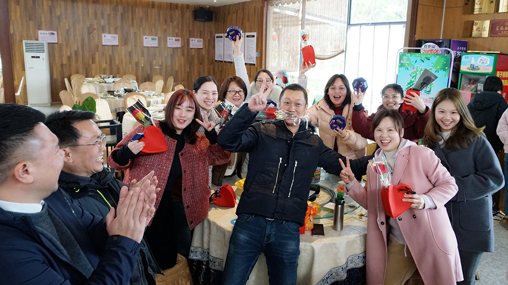 隨后的趣味游戲更顯活力。“瘋狂數(shù)鈔票”中,指尖飛舞化作疾風驟雨;“你比劃我猜”時,眉目傳情上演心有靈犀;“動感搖一搖”里,肢體演繹隨樂律動。全員合唱《鏗鏘玫瑰》時,熒光隨節(jié)拍流轉,笑靨伴音符飛揚,繪就了一幅“巾幗心向黨”的動人畫卷。