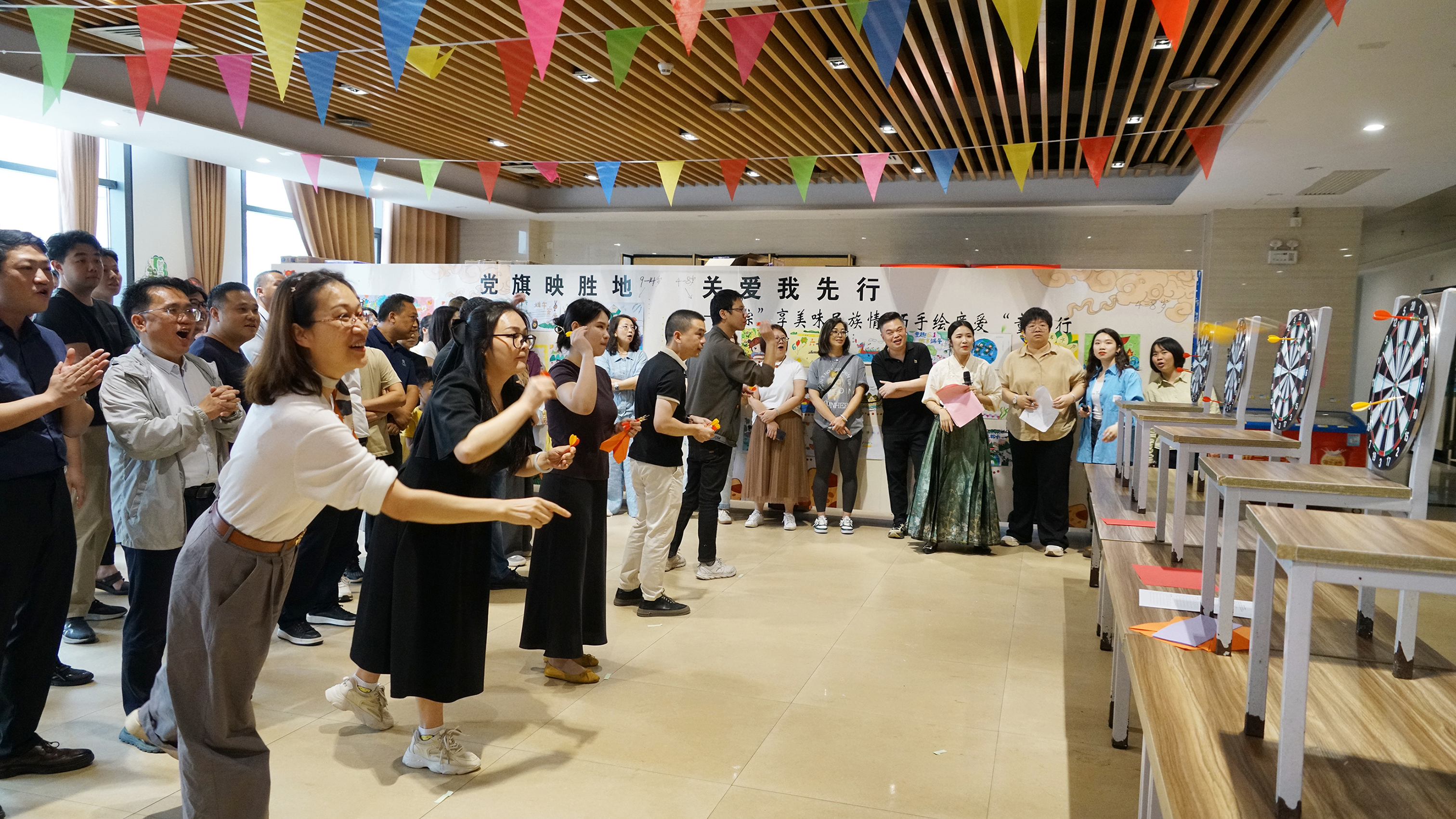 “家企同行·國風(fēng)非遺——民族文創(chuàng),與‘粽’不‘童’”趣味游戲挑戰(zhàn)環(huán)節(jié),將活動(dòng)氛圍推向高潮。童年紙飛機(jī)、端午射五毒、趣味投壺三大趣味游戲讓職工與孩子都沉浸其中。在童年紙飛機(jī)游戲中,為了能讓紙飛機(jī)飛得更遠(yuǎn)、更久,大家興致勃勃地嘗試著各種折法,隨后用力一擲,紙飛機(jī)在空中劃出一道道優(yōu)美的弧線,有的飛得又高又遠(yuǎn),有的則在空中翻轉(zhuǎn)幾圈后穩(wěn)穩(wěn)落地,看著自己折的紙飛機(jī)歡呼雀躍,仿佛回到了無憂無慮的童年時(shí)光。端午射五毒游戲則充滿了傳統(tǒng)韻味,大家手持飛鏢,瞄準(zhǔn)靶心,每當(dāng)有人射中五毒圖案,周圍就會(huì)響起一陣歡呼聲,大家在歡聲笑語中感受著端午節(jié)的傳統(tǒng)習(xí)俗。趣味投壺游戲更是熱鬧非凡,參與者們瞄準(zhǔn)壺口,或站或蹲,調(diào)整著姿勢(shì)和力度,隨著一次次投中,現(xiàn)場(chǎng)的氣氛也一次次被點(diǎn)燃,歡呼聲、加油聲此起彼伏。歡聲笑語回蕩在整個(gè)活動(dòng)現(xiàn)場(chǎng)。各組成員在比賽中相互配合、相互鼓勵(lì),展現(xiàn)了團(tuán)隊(duì)合作的力量。最終,根據(jù)各組獲得的總分,評(píng)選出冠軍組,大家在歡樂中感受到了團(tuán)隊(duì)的溫暖與力量。