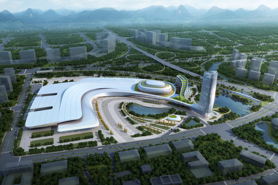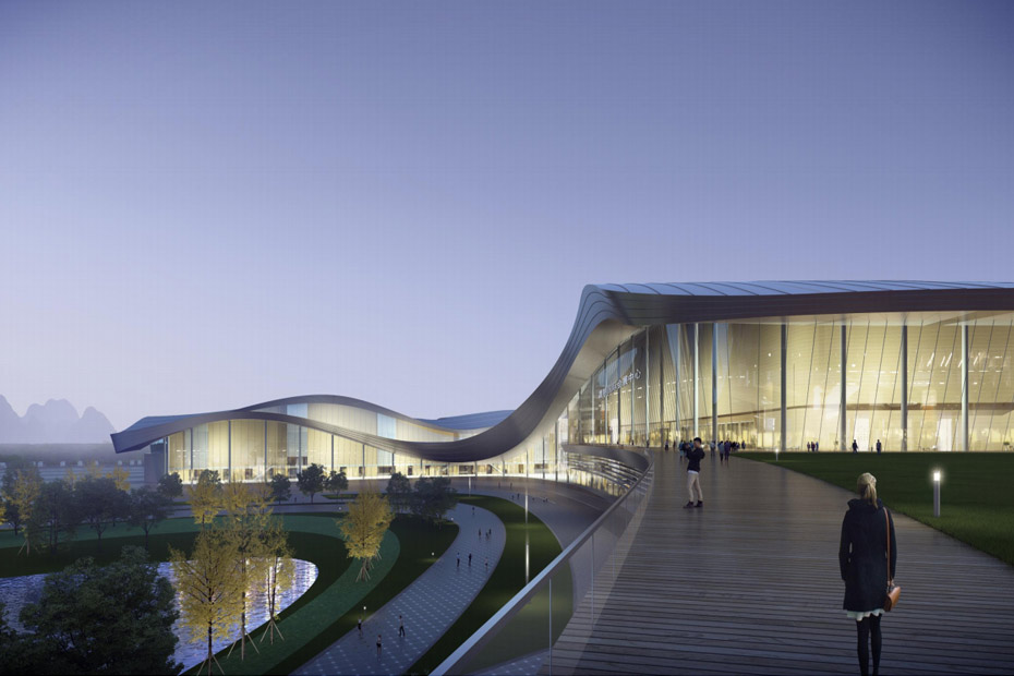 桂林國(guó)際會(huì)展中心是集會(huì)議、會(huì)展、商業(yè)、接待為一體的大型綜合性建筑,規(guī)劃用地面積約750畝,一期總建筑面積約39.7萬(wàn)平方米,其中一期室內(nèi)凈展面積為6萬(wàn)平方米,室外展面積為5萬(wàn)平方米,會(huì)議中心凈使用面積約1.5萬(wàn)平方米,第一接待中心(四星標(biāo)準(zhǔn),含350間客房)以及第二接待中心(五星標(biāo)準(zhǔn),含450間客房)。